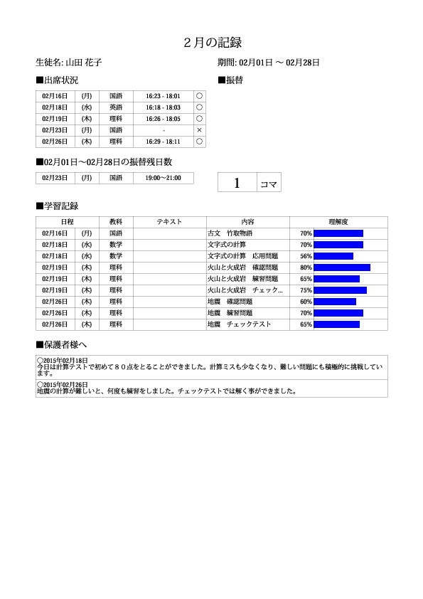 | 生徒情報の登録 | 無料 |